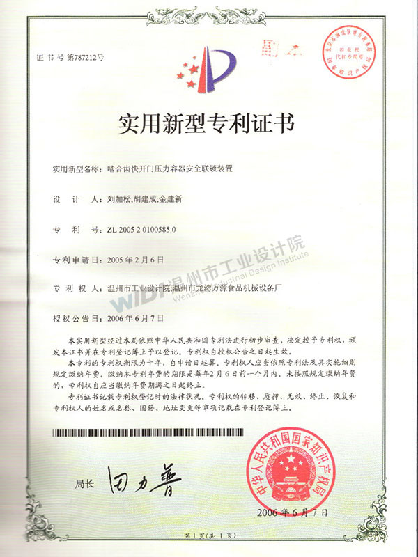 實(shí)用新型專利證書1