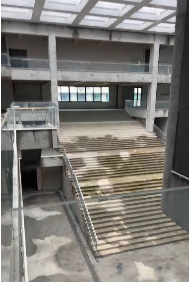 建筑美學(xué):建筑內(nèi)部空間流動活潑,以多維度的層次感與流動性喚醒豐富的空間體驗;建筑外立面采用橫向條形玻璃窗與啞光藍(lán)色鋁板交替構(gòu)成,形成簡潔的現(xiàn)代韻律。同時中庭的空間構(gòu)架在光影交織中勾勒出虛實交錯的幾何敘事。